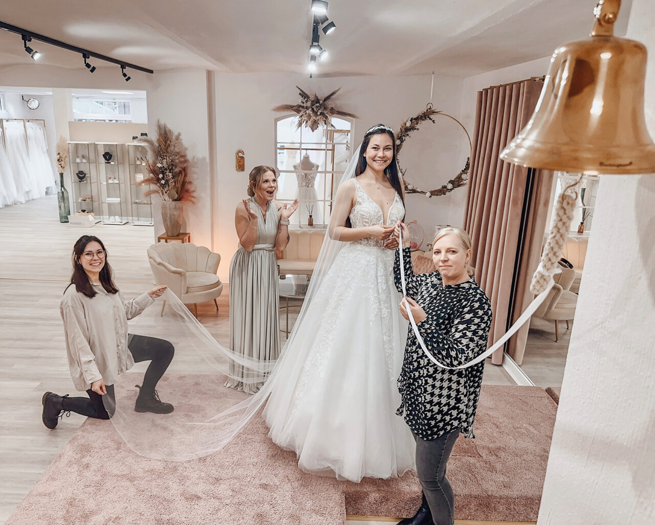 Ich selbst habe vor 3 Jahren das Glück gehabt, meinen wundervollen Mann zu heiraten, und bin zu diesem Zeitpunkt auch, wie jede unserer Bräute, auf die Suche gegangen, mein eigenes perfektes Traumkleid zu finden. Ich hatte mir meine eigene Brautkleid Anprobe ganz anders vorgestellt; ich hatte immer in meiner Vorstellung, dass man an diesem Tag, wo alles beginnt, die glücklichste Frau ist und auch immer habe ich mir vorgestellt, wie es wohl ist, seinen eigenen ganz persönlichen Braut-Moment zu haben. Leider hatte ich an diesem Tag keines dieser wundervollen Gefühle und dachte mir direkt, dass ich es anders machen muss, denn ich wusste schließlich genau, welches Gefühl mir gefehlt hat. Ständig hatte ich diesen Gedanken, wie es wohl wäre, einen eigenen Brautmodenladen zu haben, und dann kam das Schicksal. Bei einem Spaziergang mit meinem Mann habe ich das freie Ladenlokal entdeckt, wo ich heute ganz viele besondere Menschen empfangen darf, um ihnen behilflich zu sein, ihr Traumkleid zu finden.