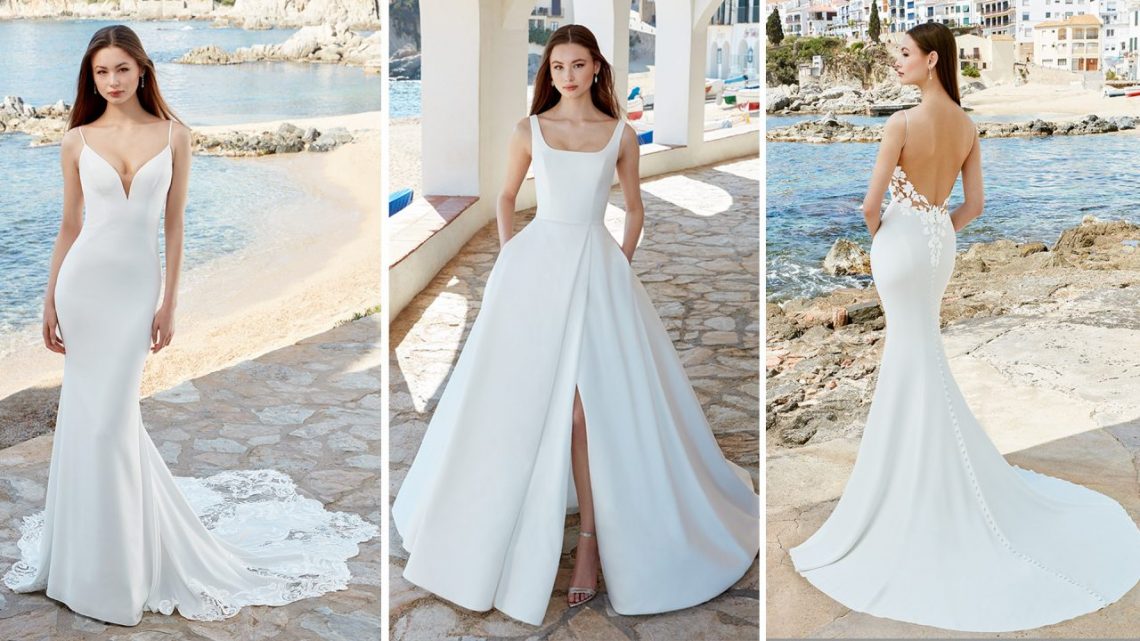 Einer meiner Favoriten ist ANTONIA. Perfekt für die moderne Braut mit viel Selbstbewusstsein. Der dramatische, tief ausgeschnittene Rücken mit kreuz und quer verlaufender, asymmetrischer Drapierung und einem subtilen Hauch von floralen Spitzenapplikationen verleiht dem schlichten Kleid einen coutureähnlichen Reiz.