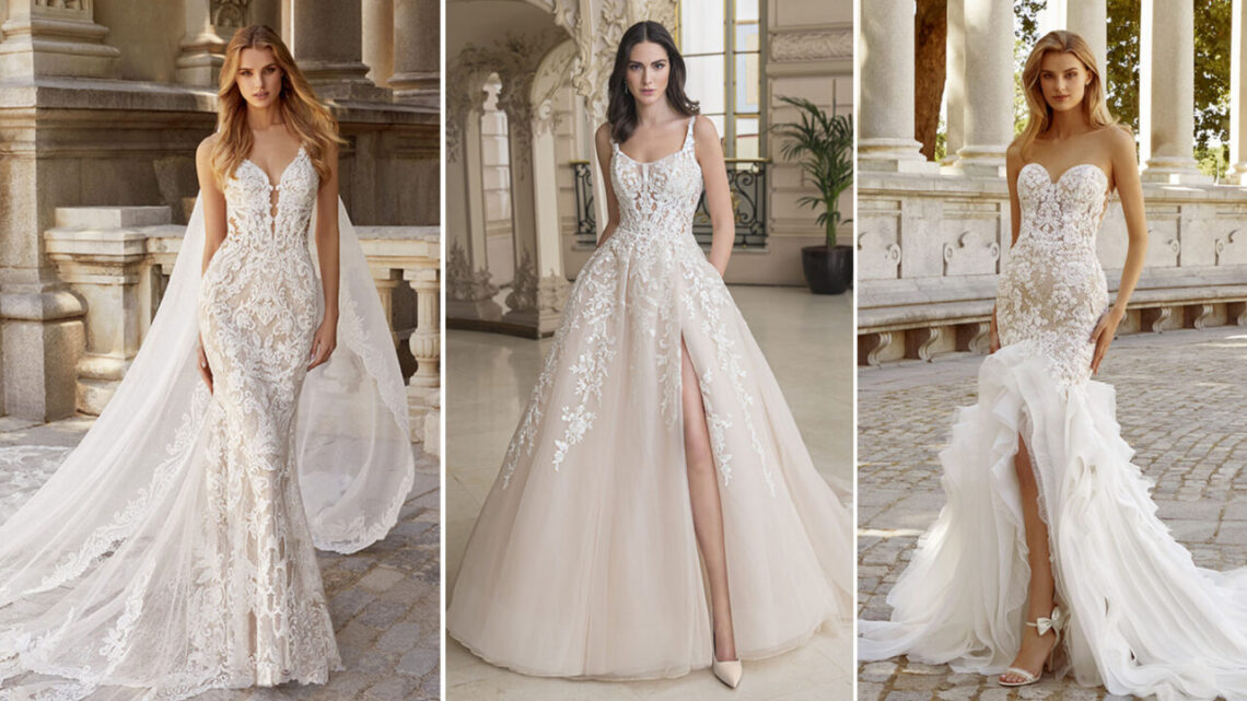 Als Nächstes ist 2023 ÉLYSÉE Atelier an der Reihe und bringt den ganzen Glamour und noch einiges mehr! Die diesjährige Kollektion bietet brandneue komplizierte Spitzendesigns und atemberaubende doppelte Schleppen auf klassischen A-Linien, Ballkleidern und Meerjungfrauen-Silhouetten. Abnehmbare Überröcke bieten mühelos vielseitige Stylingmöglichkeiten… und sehen Sie sich das wunderschöne Kleid unten mit einem passenden Schleier für den ultra-romantischen Look an.