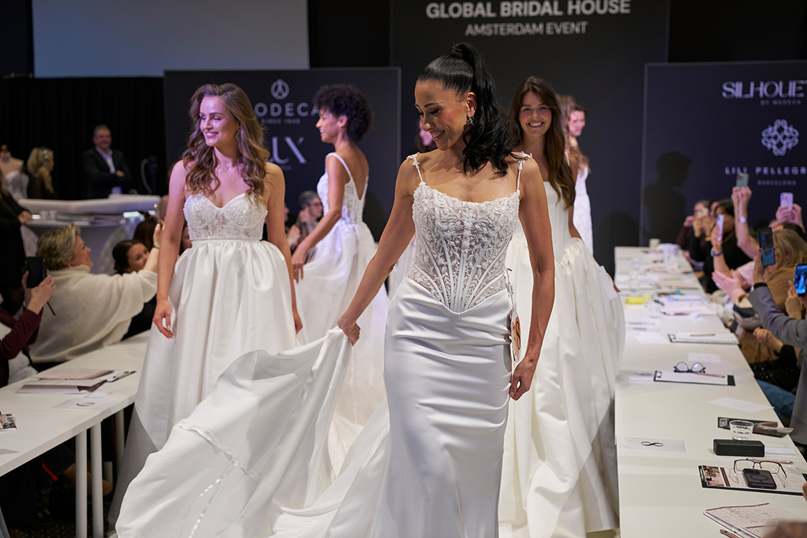 Vor der lebendigen Kulisse Amsterdams wurde der Laufsteg zur Bühne für Emotion, Eleganz und feierliche Inszenierung, als jede GBH-Marke ihre neue Vision der modernen Braut präsentierte.