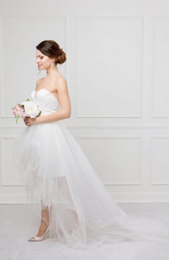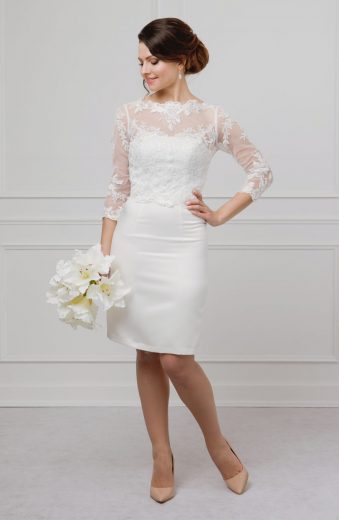 Seit zehn Jahren feilt Lena Moos an der Idee, die sie in diesem Jahr auf der Interbride erstmals präsentierte. „Wir stellen komplett variable Brautkleider zusammen“, sagt die 36-Jährige, die selbst seit 2004 als Brautmoden-Einzelhändelhändlerin tätig ist. „Ich habe in meinen Beratungsgesprächen immer wieder gemerkt, dass ein Kleid selten die perfekte Lösung ist“, erzählt die Euskirchenerin. Oft haben ihre Kundinnen zwar ein Teil des Kleides gefallen. „Aber wie oft wurde ich gefragt: Gibt es das auch mit kürzerem Rock oder längeren Ärmeln“, sagt Lena Moos. Die Antwort musste bei der Powerfrau nicht lange auf sich warten.