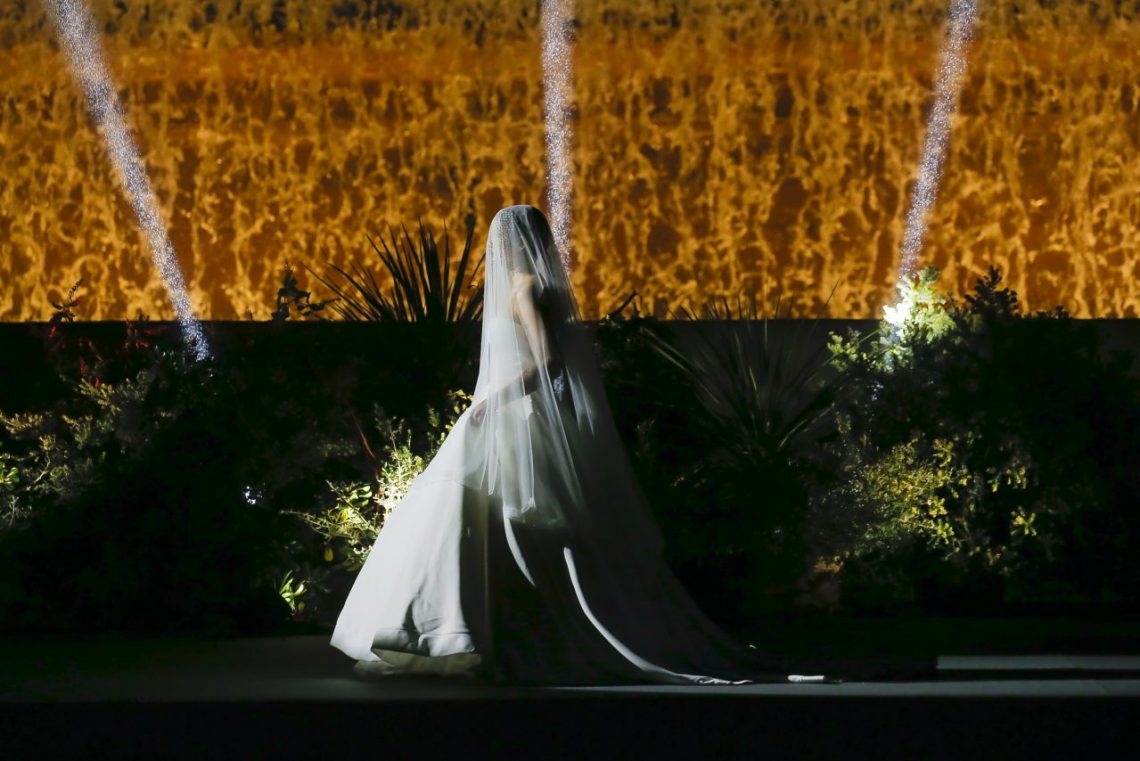 In einer kraftvollen Botschaft gegen Kinderheirat hat Justin Alexander einzigartige Ausdrucksformen, mit Juwelen besetzte Masken und eindrucksvolle Erzählungen integriert, während er seine zeitlosen, modernen, klaren Stile mit geradlinigen Designs präsentierte. Unter dem Motto „Lasst uns die Schichten entfernen, die Kristalle wegschmelzen, die Schnürung lösen“ ist ein Hochzeitskleid eine Leinwand, und die Braut macht daraus ein Meisterwerk.
