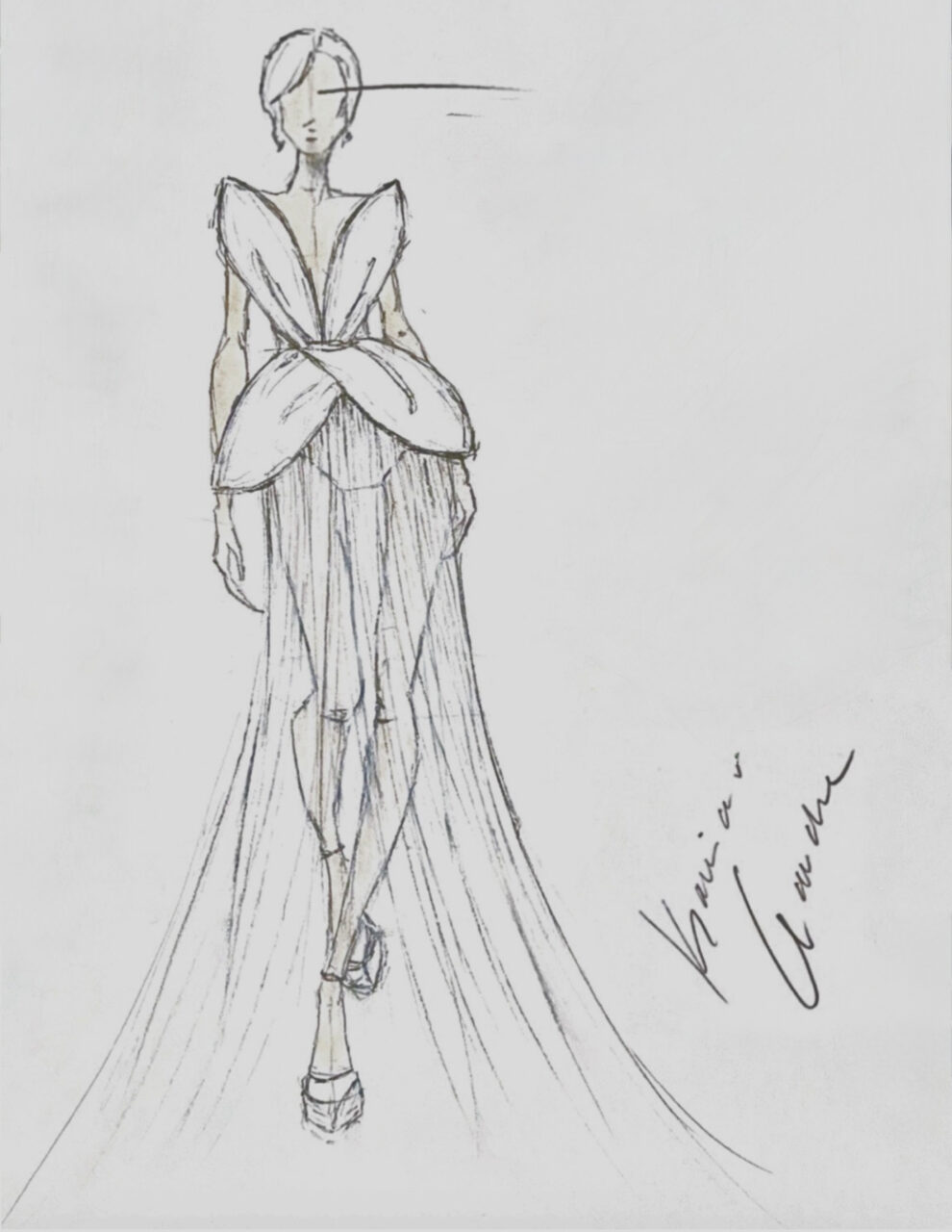 Die 28-teilige Kollektion überzeugt durch vielseitige Mix-and-Match-Elemente, die die Brautmode neu interpretieren: Strukturierte Korsagen treffen auf maskulin geschnittene, weit fließende Hosen oder opulente, ausladende Tüllröcke. Volants, kunstvolle Drapierungen und handwerkliche Raffinesse verleihen jedem Look Tiefe und Bewegung.