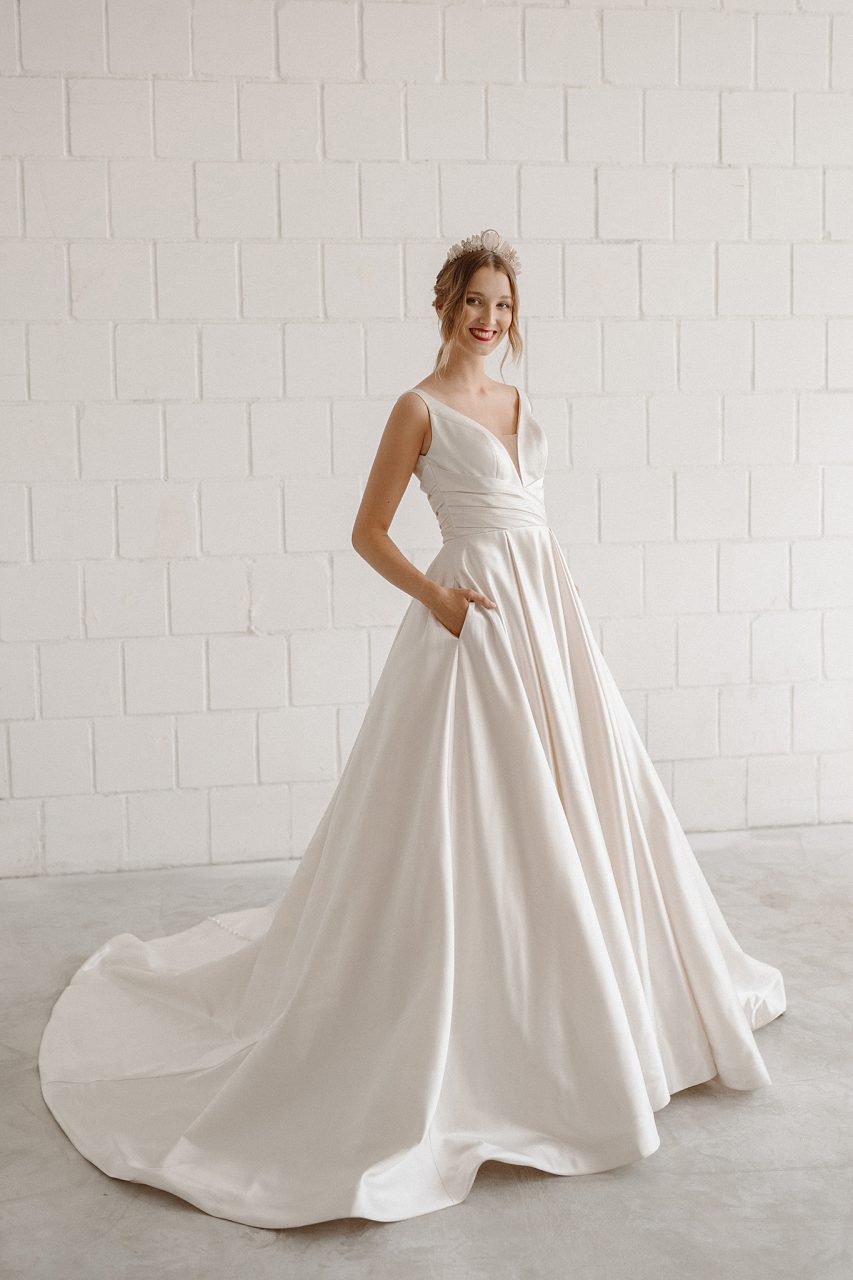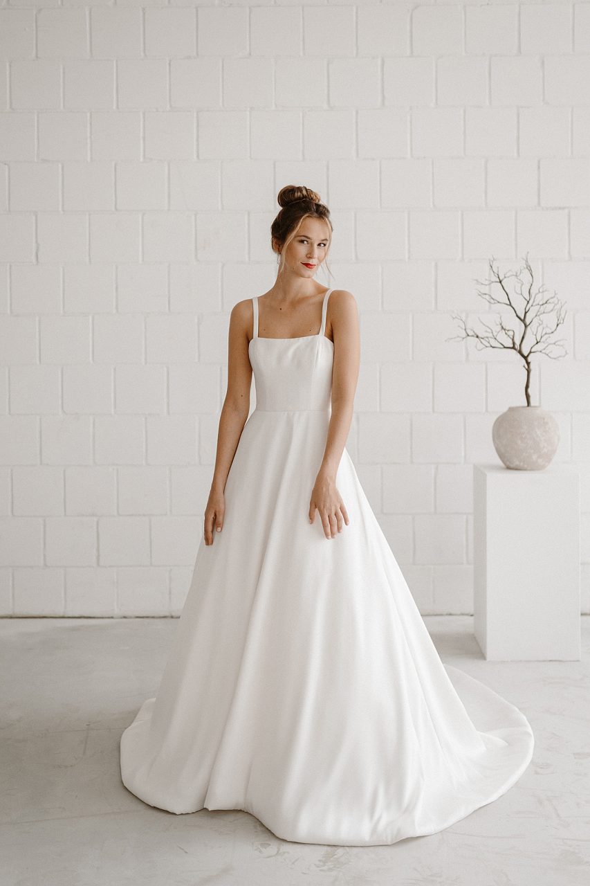 Elegant, clean, modern und ein Hauch verspielter Romantik – so beschreibt Stefanie Kox ihre eigene Bridal Kollektion, die zunächst aus acht Kleidern besteht: „Für mich ist ein absoluter Mädchentraum in Erfüllung gegangen! In meinem Job als Wedding Planerin lege ich großen Wert auf Individualität und Kreativität, das wollte ich auch noch stärker in meine Brautboutique einbringen. So ist dieser Gedanke während Corona gereift, eine eigene Bridal Couture Kollektion zu entwerfen, die für jede Braut und jeden Stil etwas bereithält. Sehr straight, aber nicht überladen – und trotzdem individuelle Wünsche zulässt. Und dann sagte ich mir: Wenn nicht jetzt, wann dann?“