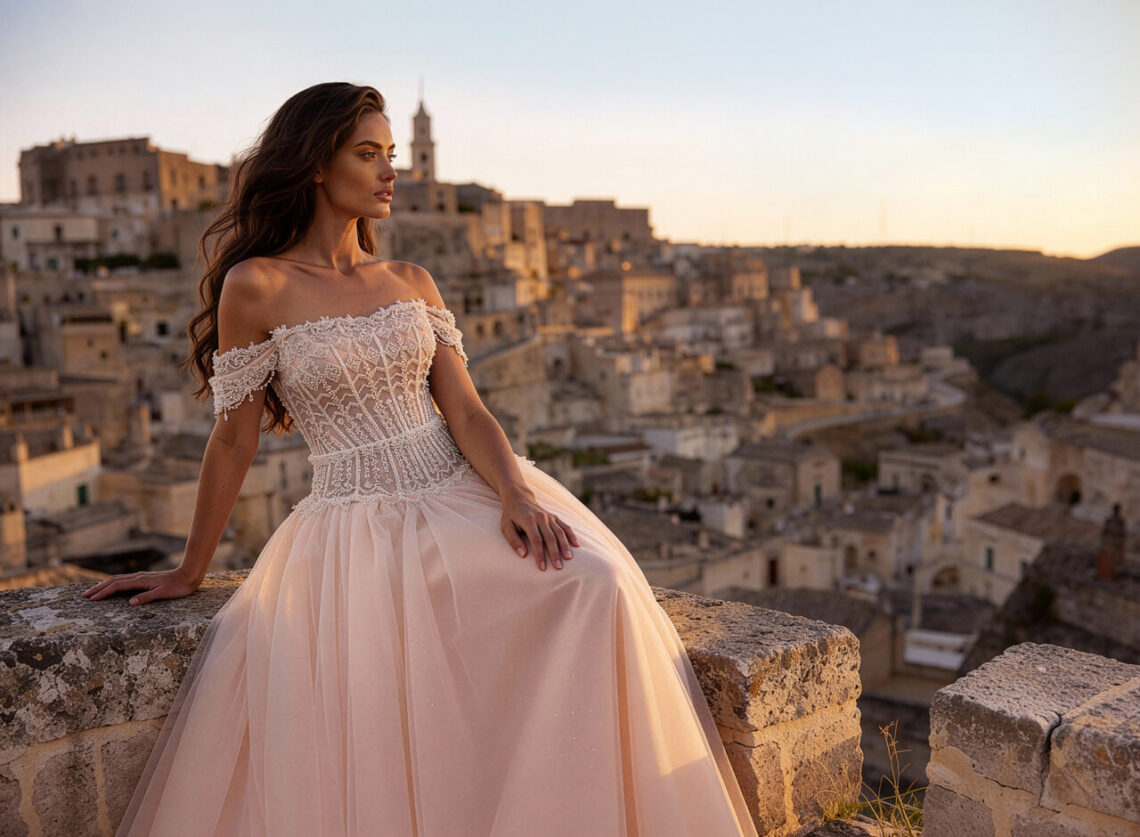 Monica Loretti integriert variable Designelemente, die es Bräuten ermöglichen, ihren Look im Verlauf des Tages individuell zu verändern: Schleppe hochstecken oder abnehmen, Ärmel entfernen, Lagen neu arrangieren. Der Fokus liegt dabei nicht allein auf der optischen Verwandlung, sondern auf dauerhaftem Komfort und Bewegungsfreiheit.