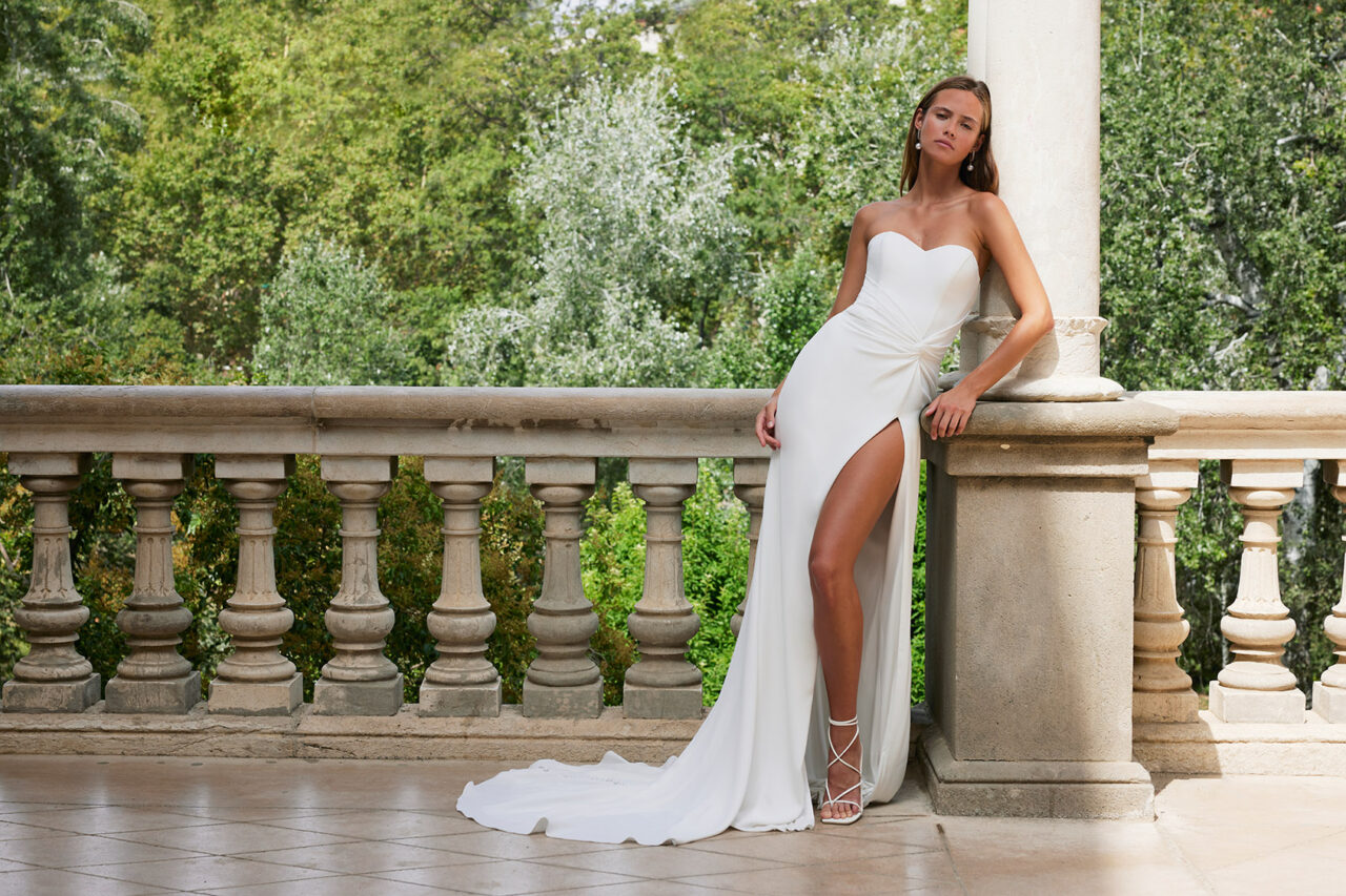 Die neue Kollektion 2024 “Celestial” ist wirklich eine Mischung, aber ich würde sagen, eines der beliebtesten Highlights ist „TALA”. Es ist ein trägerloses Kleid im Sweetheart-Stil, verziert mit einem gewickelten Knoten, einem sexy hohen Schlitz und abnehmbaren Ärmeln. Das Kleid nimmt die Essenz unserer ersten Kollektion auf, verwandelt sie aber in etwas Neues, Elegantes, Feminines und Sexy. Einen solchen Stil hatten wir zuvor noch nicht gezeigt, es ist also wirklich wie eine Evolution.