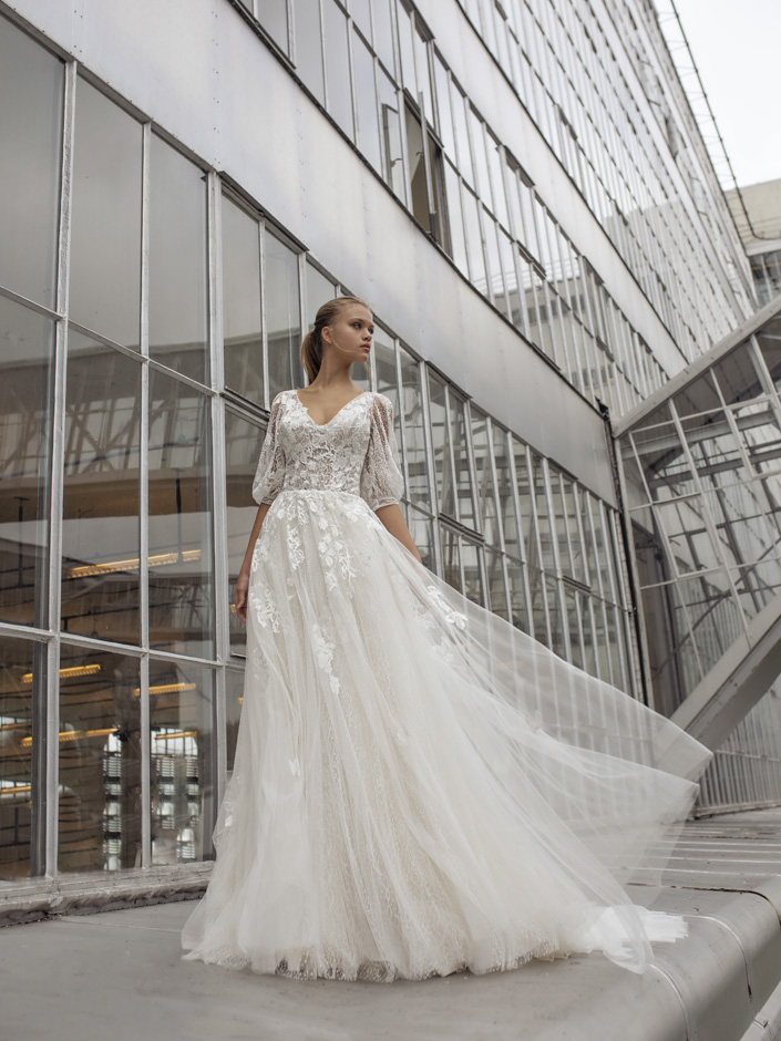 Puffärmel sind zurück – aber auf sehr moderne Weise – und diese Formen sind ein starkes Statement für die Saison 2021. Und natürlich wird es auch Boho-Styles geben, aber in der Le Papillon by Modeca Linie werden sie sehr viel eleganter sein und sich durch einen reinen Couture Look auszeichnen.