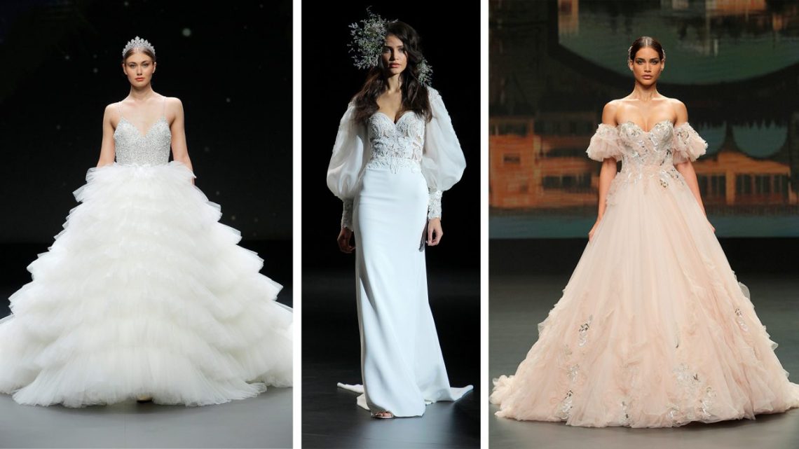 Ein Merkmal, das jedes Jahr die Aufmerksamkeit auf sich zieht, sind die verschiedenen Farbkompositionen auf dem Laufsteg. Neben den „Go-To“-Nudetönen, Beige- und Champagnerfarben sahen wir pastellrosa, atemberaubende Rot- und Schwarztöne, Goldtöne und sogar ein hellblaues Hochzeitskleid! Farbige „Akzente“ wurden auf Hochzeitskleidern aus schwarzen Gürteln, rosa Schnürrücken oder blauen Schleifen eingearbeitet.