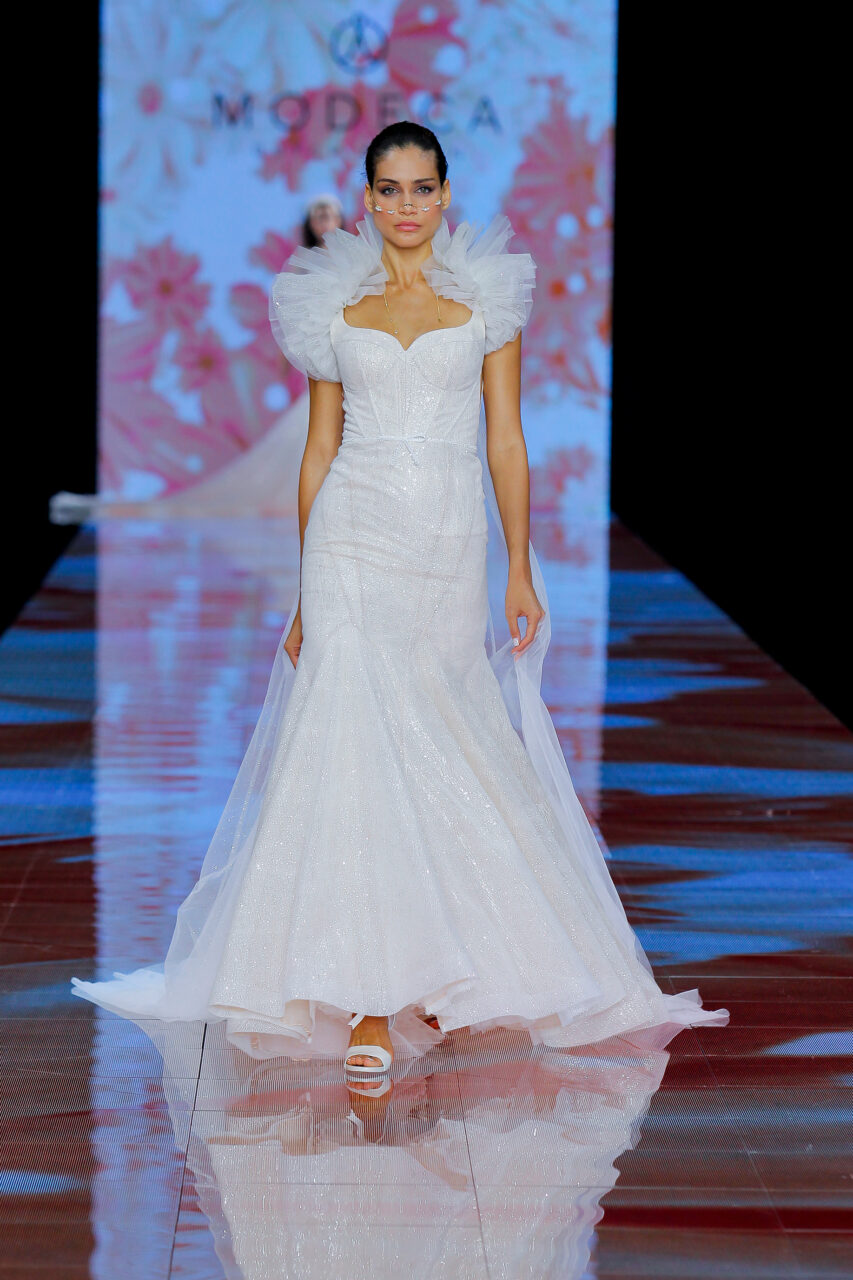 Bridal Times had the chance to speak with the Modeca Bridal Team to tell us more about their standout pieces of their latest collection on the runway.