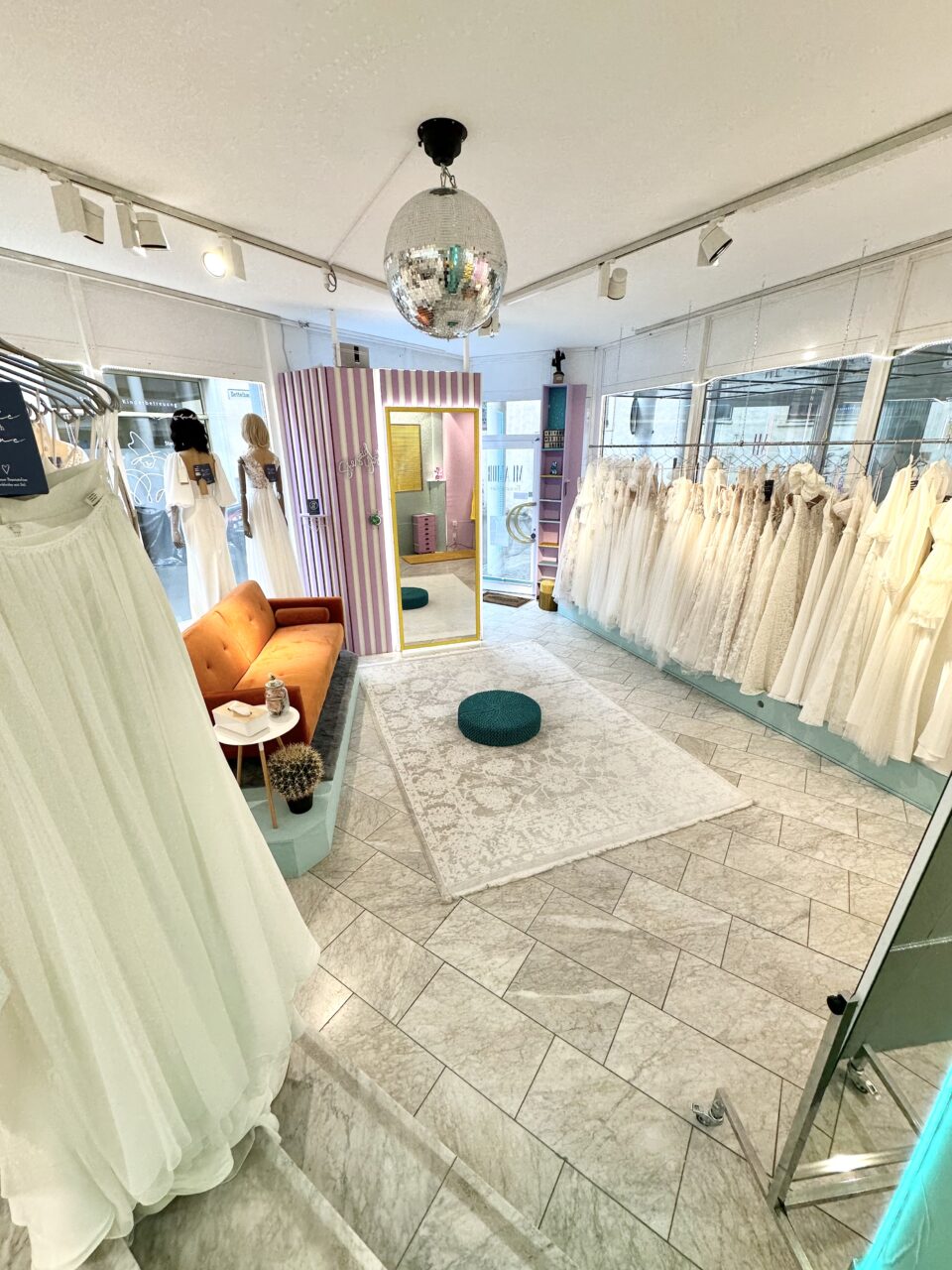 A lovingly curated “Bridal Wonderland,” where you’re free to be yourself. I take time to understand your wishes, your style, and your insecurities. Whether Boho, Vintage, Princess, or Curvy, you’re welcome to try anything. My dresses are carefully selected and suit all budgets. What matters is that they reflect you and make you shine. I’m also known from the TV show “Zwischen Tüll und Tränen,” where I get to show that choosing a wedding dress is more than shopping, it’s an emotional experience.