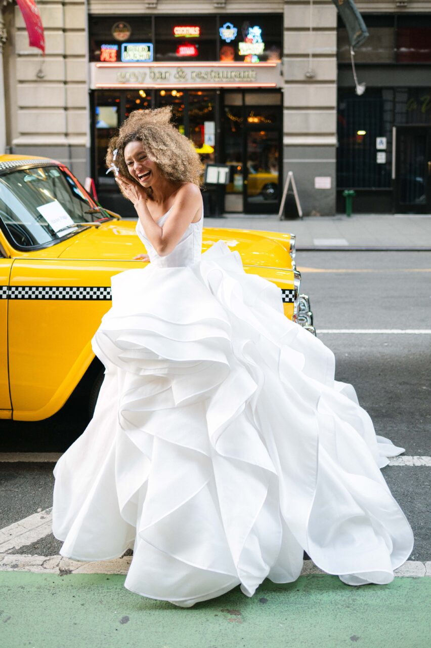 I love that we’re entering a bold era of bridal rule-breaking. I’m leaning into floral texture, dramatic sleeves, mini moments, convertible overskirts, and sculptural corsetry. But what I care about more than trend is emotional silhouette—dresses that capture a feeling rather than a formula. Every gown should feel like a decision, not a default.