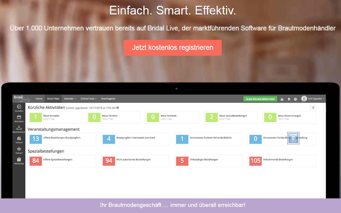 BridalLive: Bridal Shop Software has expanded their service to include the German market. Already a staple in 1000+ stores across the United States, United Kingdom, Europe, and Australia. German Bridal stores will now have the opportunity to streamline their point of sale and ordering process, automate marketing, and access to a one-on-one customer success manager.