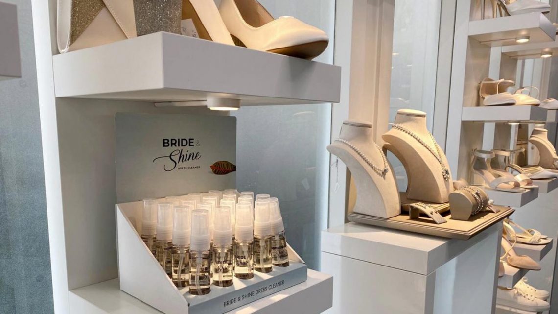 Bride & Shine Dress Cosmetics, known for their stain removal sprays for wedding dresses, is the first choice when it comes to quickly removing stains with a simple “spray, wipe and go system”. Bridal Stylists are able to offer brides the Bride & Shine Dress Cleaners in their stores and much more.