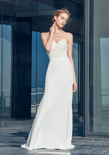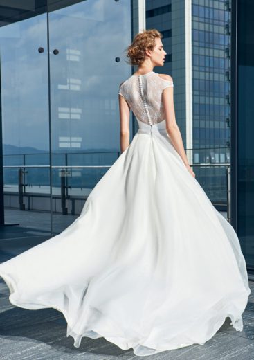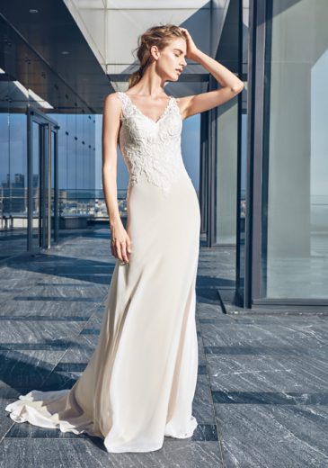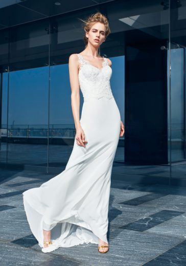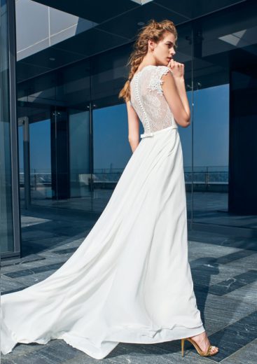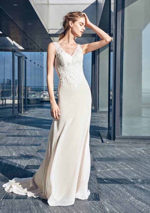 The latest brand new collection to be seen is the Metropolitan 2018 The Rio Line, which features wedding looks for the urban bride with a dynamic lifestyle. The premiere collection features light fabrics, understated necklines, and smooth silhouettes. For those who choose to have their wedding day at the town hall, Metropolitan would be a great choice. “Metropolitan is an extension of the brand with beautiful sleek, chic fabrics for city brides. We will be featuring the line at all the major fairs in Europe for 2018 along with our main Demetrios Platinum.”