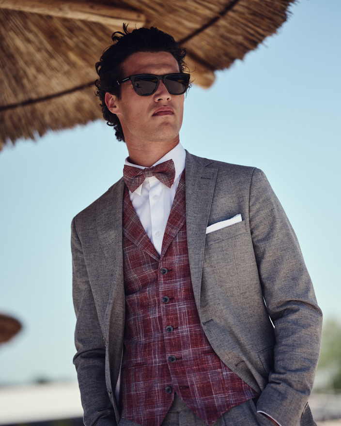 The collection is very diverse and is divided into the categories: Traditional, Urban, Vintage & Boho. We have significantly expanded the more casual themes for outdoor weddings and use comfort stretch in all of our suits for unrestricted wearing comfort.