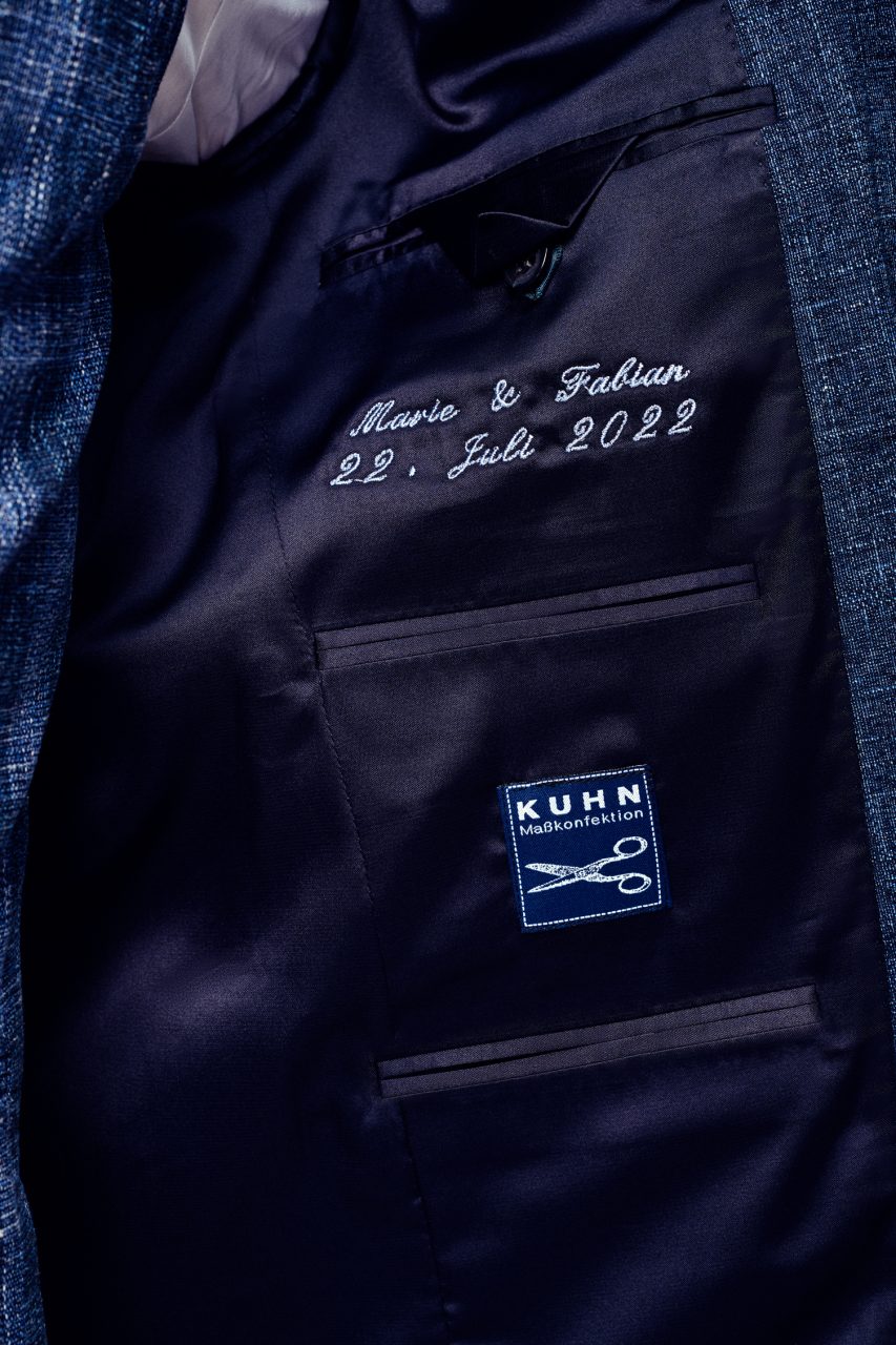 We are a traditional brand with many years of experience in the field of made-to-measure clothing. The accuracy of fit and quality are our top priority. In our stores, customers can choose from a variety of cuts, fabrics, buttons and linings, and the individual embroidery on the lining of the jacket is particularly popular. We can embroider the wedding date and the names of the bride and groom in any color. True to the motto: fashion for individualists.