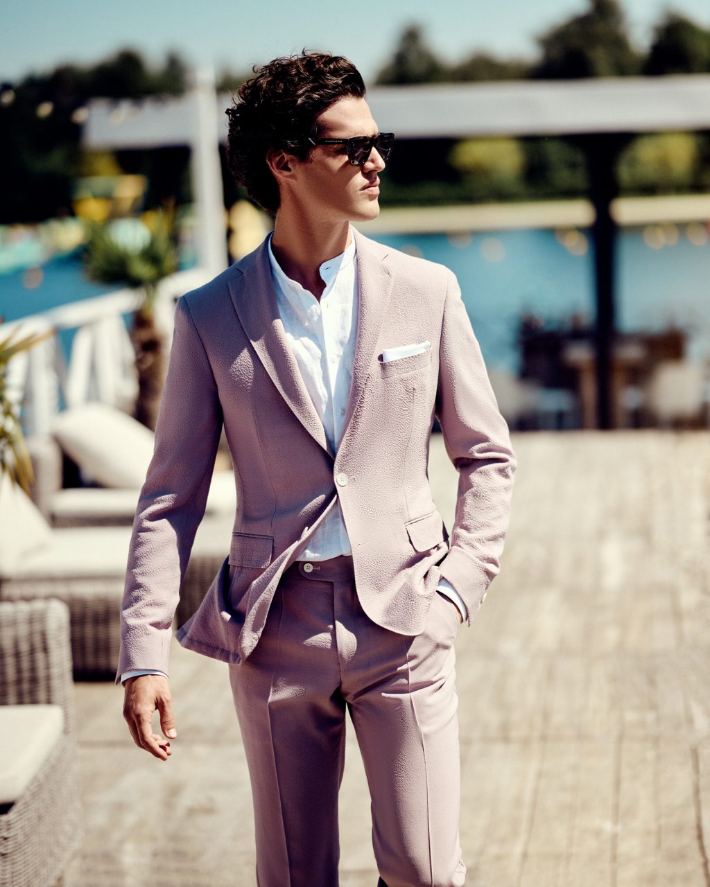 The accessories are an elementary attribute when it comes to styling. Accessories can make a look more playful or show it more elegantly. The classics are cufflinks, pocket handkerchiefs, plastron or bow ties. Sometimes less is more, especially in the field of an outdoor wedding and boho. In this case, an open Mao collar shirt and a casual pocket handkerchief made of linen, would be sufficient.