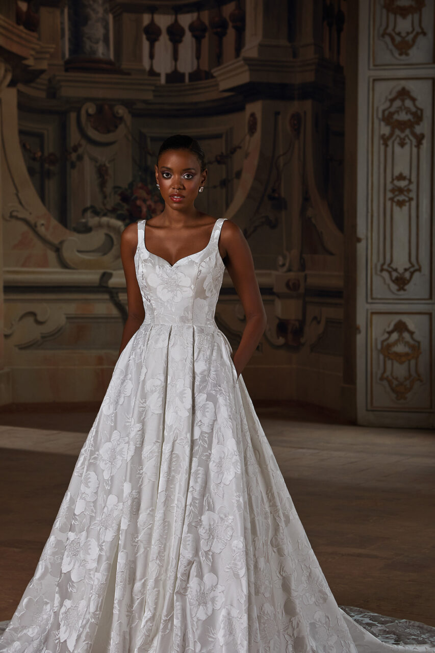 The Demetrios designs shine with fabulous detailing, stunning veils, and the addition of new matching accessories such as beautiful necklaces, scarves and bridal hand bags – which will not only complete but elevate the total bridal look. From the way the dresses move to the way they catch the light, each gown is a masterpiece that exudes elegance and grace.