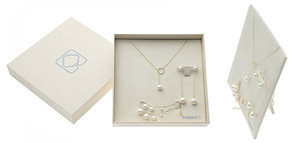 All jewelry sets of Poirier are packaged in minimalistic, yet deluxe jewelry boxes that are made out of the biodegradable material PaperWise®. Visually stunning and ecologically degradable, the ideal combination!