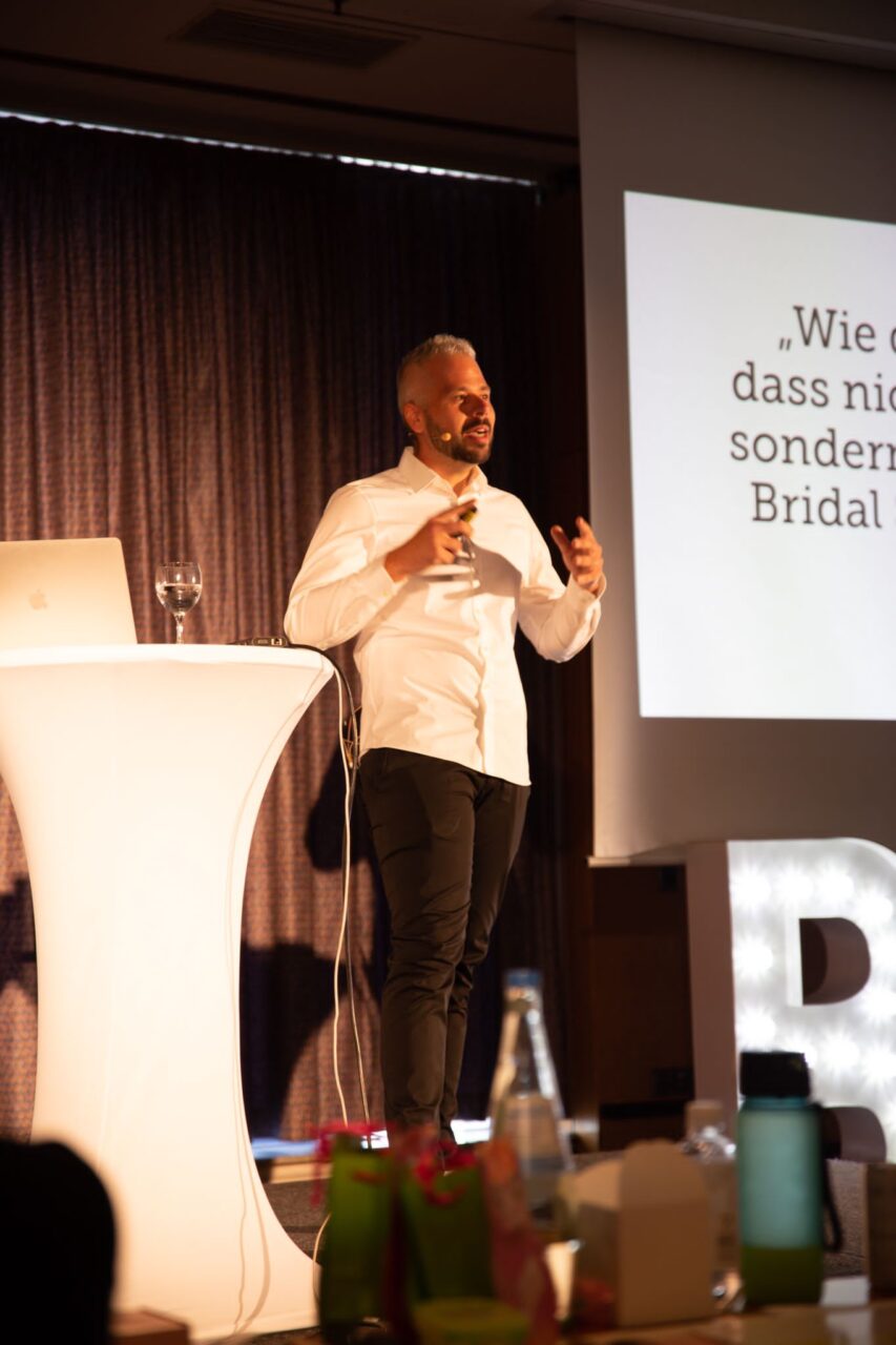 Psychology also plays a major role in bridal business, and that is why Sebastian Fröder from “Psychology in Business” was up next to take the stage at the Summit. Sebastian provided the audience with a new and interesting perspective on how bridal shops present themselves, their businesses and how consumers perceive them. He shared how bridal shops can create a positive frame around their businesses and how to properly communicate and convey competence in an effective way. With such a vast topic, Sebastian recommended his newly authored “The Black Book” to get an in depth understanding of Psychology in Business and how to apply it in your own business.