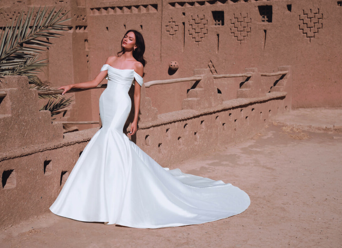 Founded in 2021, Love represents a “back to basics” approach to bridal design, celebrating the beauty in simplicity. With a focus on sleek, clean and minimalist silhouettes featuring stretch georgette, crepe and Mikado styles with subtle yet ultraromantic detailing, “Love is like our youngest sister in the Enzoani family,” says Artistic Director Kang Chun Lin. “They are young, they are full of character and have that modern edge. Launching the Love collection, I truly feel like the Enzoani family is complete now.