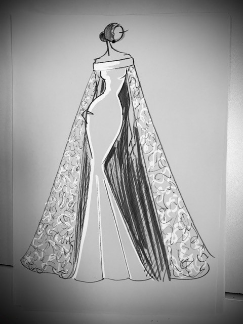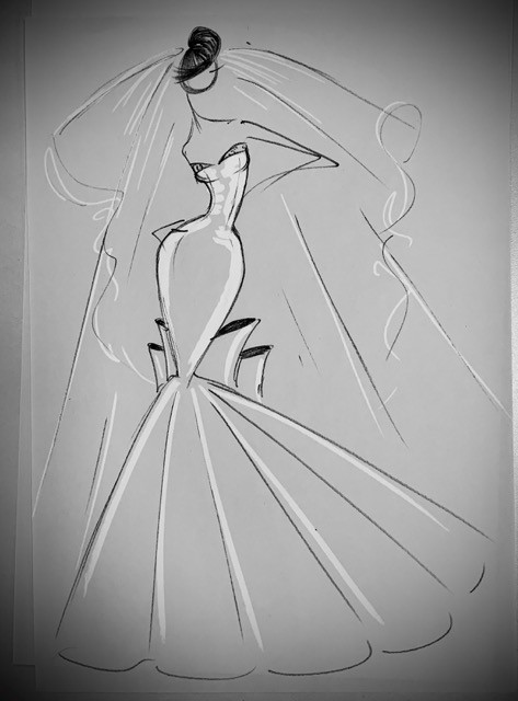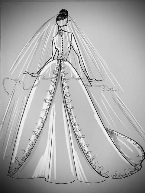 Princess Beatrice Gown, Sketch by Phil Woodhead