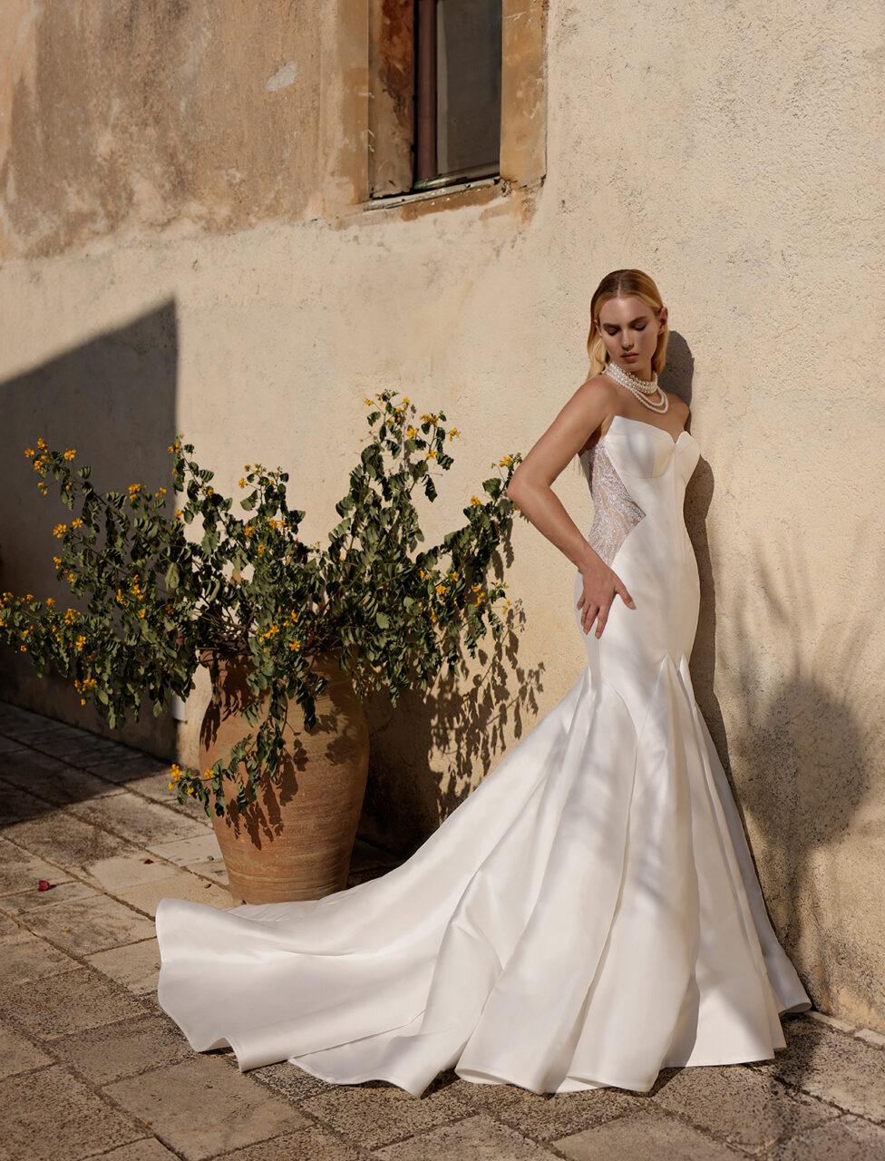 The clean look in bridal is “on trend”, but it’s hard to pin-point why this style is so loved amongst retailers and brides alike. Sabrina adds, “It could be a mix of post-corona times and life becoming simpler, but there will always be that sophisticated bride that has simple taste, which is elegant, timeless and classic.”