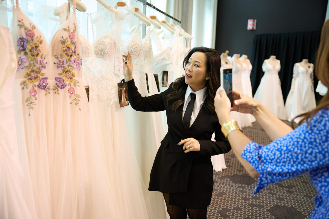 The Le Papillon Eternal Collection then made its entrance onto the catwalk, with gasps of excitement as gowns with stunning back detailing, high slits, cutouts, capes and colors captivated viewers. Among the highlights was a signature showstopping black wedding dress and even gowns accented in black in a way that we have never seen before.