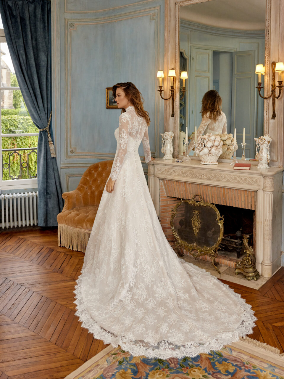 The Justin Alexander Fall/Winter 2026 collection, L’Amour En Fleur, blends modern sophistication with timeless elegance. Luxurious taffeta, romantic all-over lace, and soft tonal beading come together to create graceful, memorable silhouettes, while asymmetric and basque waistlines, ruffled skirts, and mock two-piece designs introduce movement and contemporary flair. Pearl accents and Art Deco–inspired details add subtle opulence, making each gown a statement of refined glamour for the modern bride.