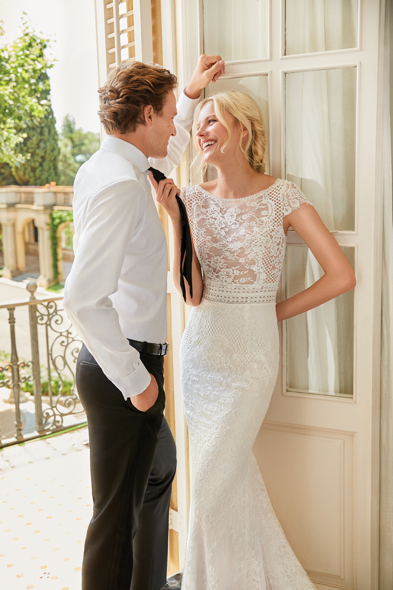 The Fit and Flare dress with hand-applied lace and illusion side cutouts is also a worldwide bestseller from the Lillian West Collection. Offering complete coverage but still sexy with the cutouts, the gown is an ideal pick for a destination wedding, as it can be easily packed and ready for the “Big Day”.