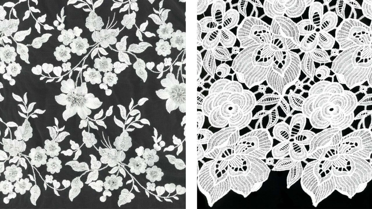 For bridal wear, our best-selling items right now are plain & glitter tulles, stretch crepes, and soft satins and duchess satins. In the case of evening wear, there are similar qualities, but in different colors. We’ve also had quite a bit of success with some embroidered tulle designs.