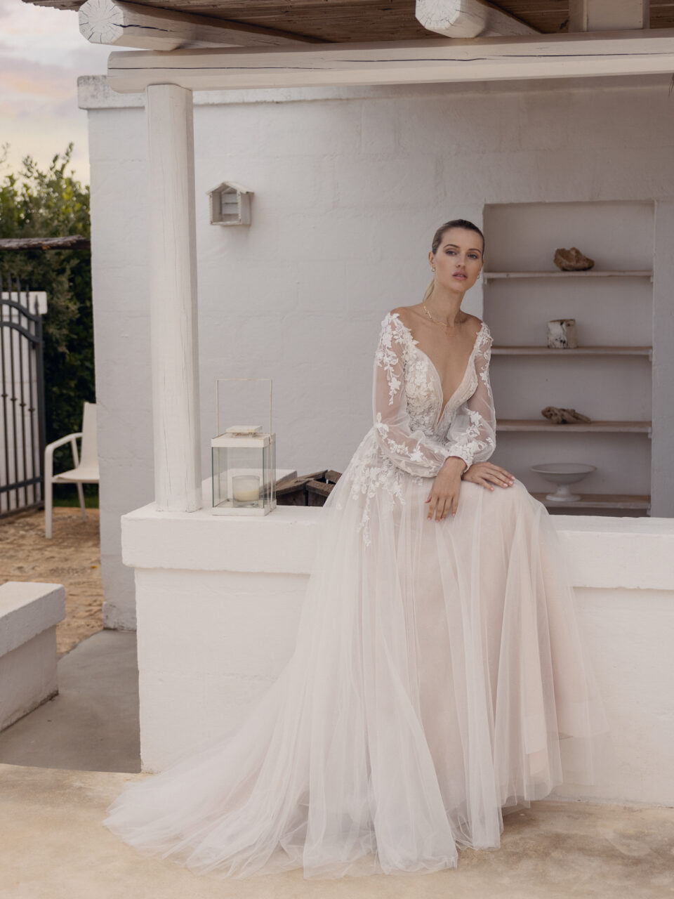 As the leaves change and a cozy atmosphere settles in, autumn weddings offer a chance to embrace warmth and richness. Choose wedding dresses with long sleeves or light layers, allowing for comfort during the slightly cooler weather. Wedding gown Anika and Braylee are perfect for a cozy autumn wedding.