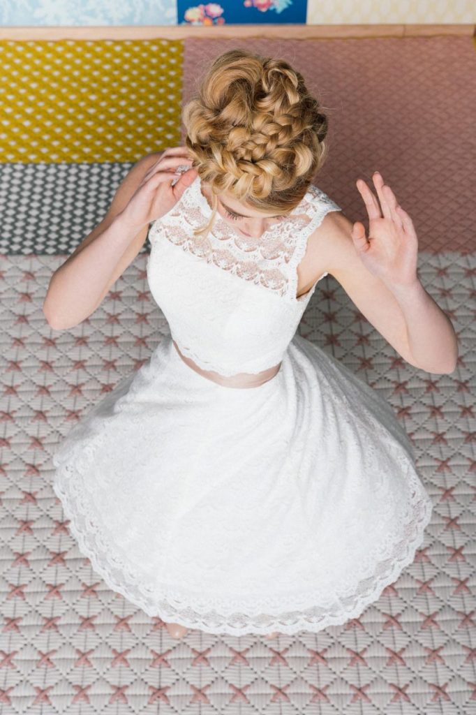 The 50’s are also very popular with küssdiebraut, with wide-swinging, plaid skirts and colored petticoats that spread a cheery vibe, and fun 60’s mini-dresses that are perfect for unconventional or courthouse ceremonies. The collection is rounded off with simple, casual urban wedding dresses in chiffon, and a cool jumpsuit for relaxed brides.
