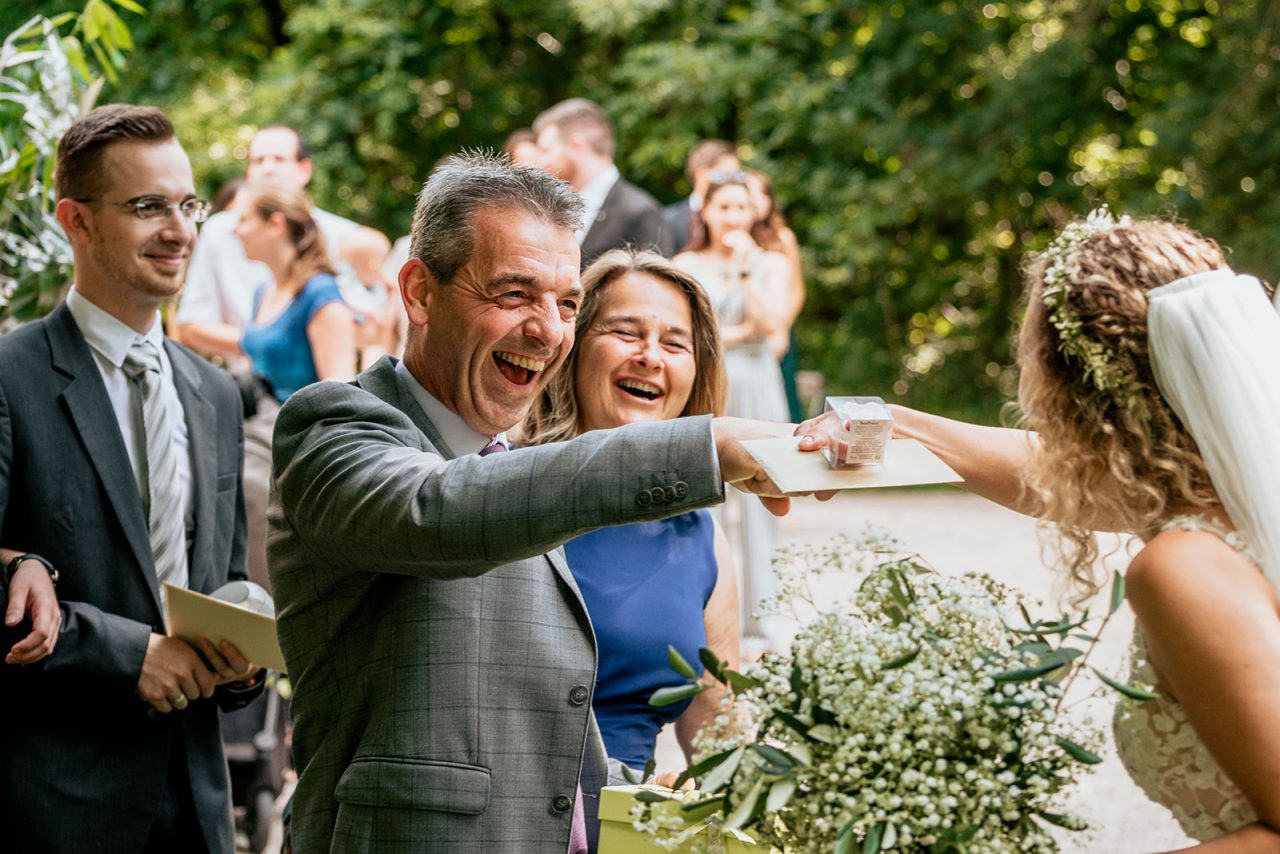 Like so many other bridal couples, Patricia and Christoph lived through very tense weeks and months prior to their wedding as it was unclear if it would even take place. They cut down on the guest list, canceled the big celebration and in a few weeks, re-organized their wedding completely with “Die HochzeitHummel”. On July 4th, 2020 Patricia and Christoph finally gave each other the “yes-word”. Patricia encourages all bridal couples: “Instead of a big wedding with about 75 guests, we decided to get married on a small scale. Together with our wedding planner, we planned a celebration for 21 people and implemented it in our own garden. Even though that was plan B, the day turned out to be a dream! The small wedding was much nicer than we would have ever expected. ”