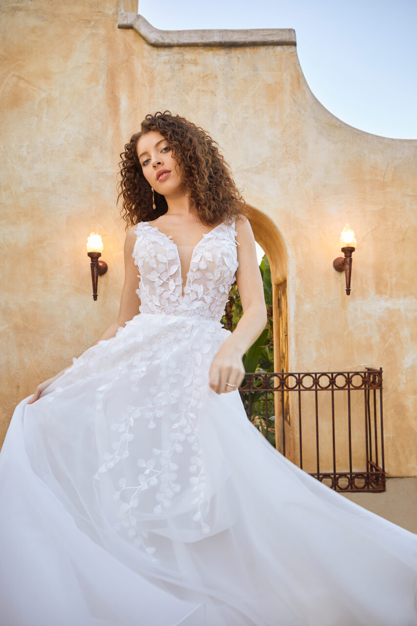 The latest “Mountain Oasis” collection from Beloved by Casablanca Bridal invites you into a world of rustic beauty. Tranquility is woven into each design inspired by nature’s untouched splendor. These gowns feature soft cascading silhouettes adorned with 3D botanical textures, highlighting the beauty of a secluded oasis.