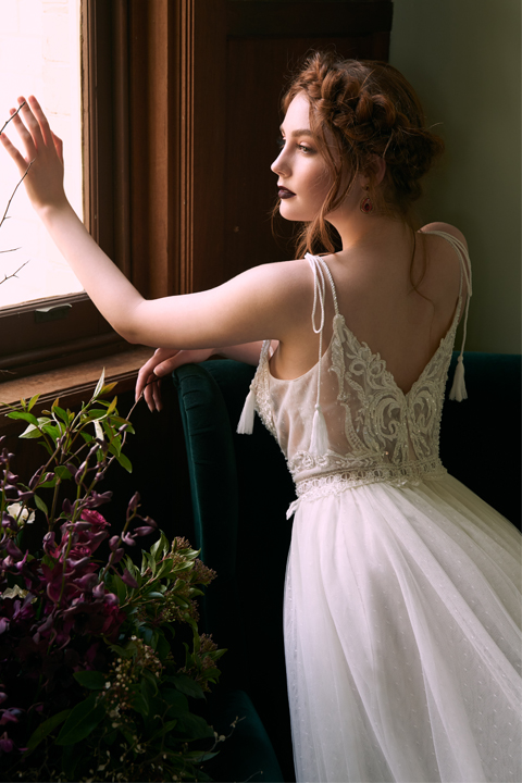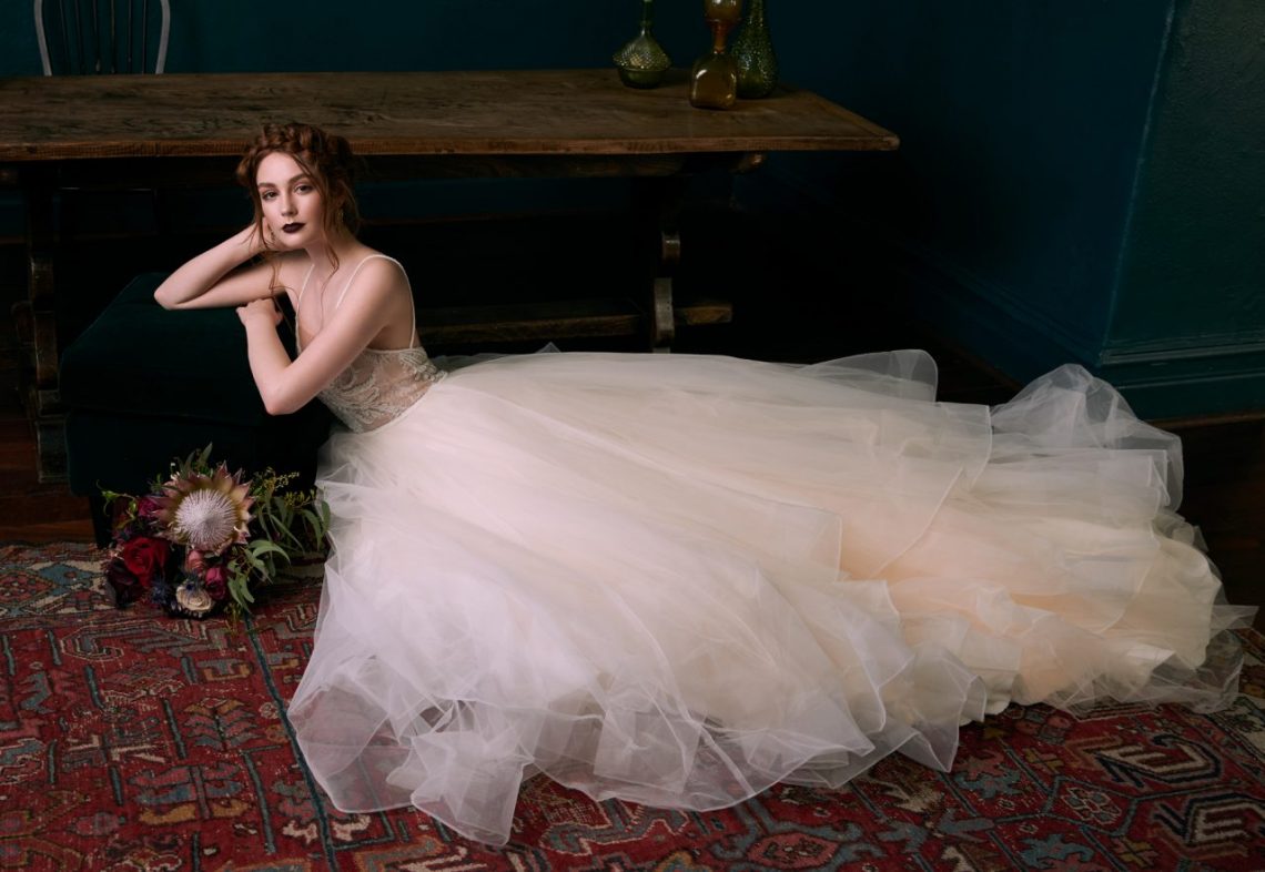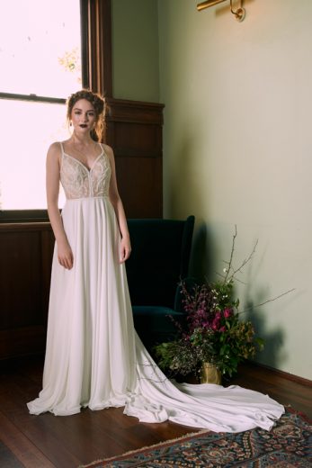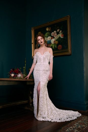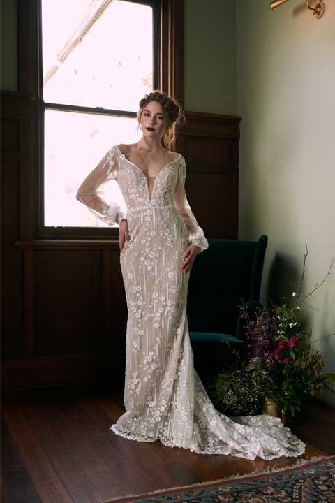The Wedding Societe collection features bold designs paired with soft streamlined silhouettes and unique lace, the perfect marriage of elegance and bohemian charm.